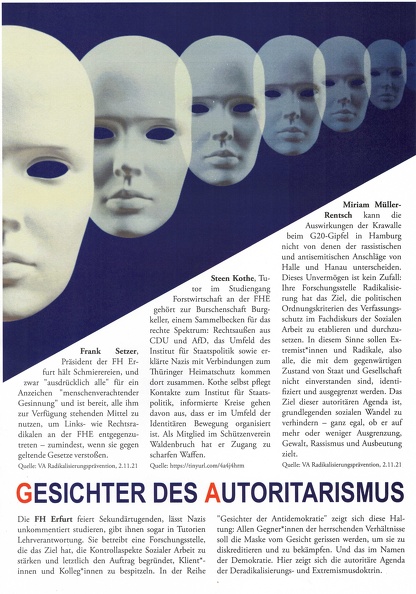 Das Plakat bewirbt eine Veranstaltung mit dem Titel "Fehlender Mindestabstand. Die Coronakrise und die Netzwerke der Demokratiefeinde. Eine Zwischenbilanz" am 18.10.2021 im Erinnerungsort Topf und Söhne. Bei der Veranstaltung sprechen Bodo Ramelow, Dr. Anja Thiele, Heike Kleffner und Matthias Meisner. Vor beigem Hintergrund sind Titel, Ort und Referent*innen in serifenloser, fetter Schrift gesetzt, Titel und Ort in schwarz, Referent*innen und das Wort "Mindestabstand" in rot. Im unteren Bilddrittel, unterhalb der zentralen Titelschrift, läuft rot-weiß-gestreiftes Flatterband durch das Bild. Das Bildelement deutet darauf hin, dass das Thema hier als ordnungspolitisches Problem verhandelt wird. Warst Du bei der Veranstaltung und kannst etwas dazu sagen, ob diese Deutung zutreffend ist? Melde Dich bei uns oder hinterlasse einen Kommentar.
